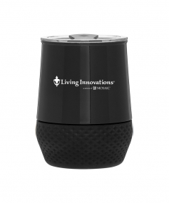 12 oz double wall 18/8 stainless steel thermal tumbler with copper vacuum insulation, push-on lid, matching swivel closure, and removable silicone base.