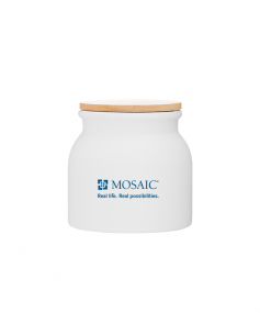 16.9 oz stoneware: matte white out / glossy white in with push-on bamboo lid; Hand wash recommended; Microwave safe with non-metallic imprint; 4 3/16 h x 4 3/16 (w/handle) w ; 500mL.