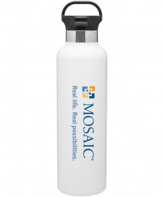24 oz powder coated double wall 18/8 stainless steel thermal bottle with copper vacuum insulation, threaded gear-shaped insulated lid and carrying handle Complies with FDA, Prop 65. 11.25" H x 3" W