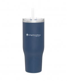 40 oz double wall 18/8 stainless steel thermal tumbler with copper vacuum insulation, stainless steel rim, dual-purpose push-on clear lid, matching sliding closure, flexible wide silicone straw, and powder coated finish