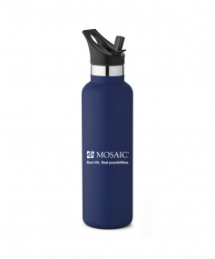 20 oz. Narrow-mouth vacuum-insulated bottle. Features a flip-top straw lid with ergonomic top finger loop. Keeps contents cold for 24 hours. Powder coat finish with copper lining, double wall 18/8 stainless steel, proprietary BPA-free insulated lid. Bottle comes with both screw-on lid and straw lid. 11" H x 2 7/8" Diameter.