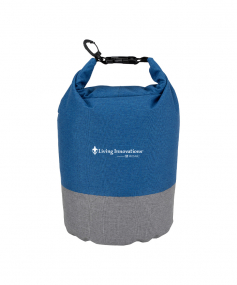 Keeps your items dry and comes in a chic two-tone design. It has a roll top closure with a buckle to connect to other bags and a carabiner clip to connect to a backpack or tether to a raft rope. Made from heathered 300D polyester, it has a 5 liter capacity and can float if dropped in water. Complies with Prop 65. 7" W x 13" H x 7" D