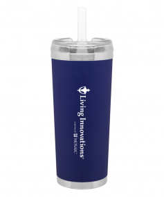 24 oz double wall 18/8 stainless steel thermal tumbler with copper vacuum insulation, stainless steel rim and base, threaded Eastman Tritan lid, snap closure, straw opening, and flexible wide silicone straw.