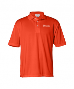 Made of 4.0 Oz., 100% polyester. Features moisture wicking fabric, fashion knit collar with box placket and three white pearlized buttons, and double-needle stitched cuffs and side vents.