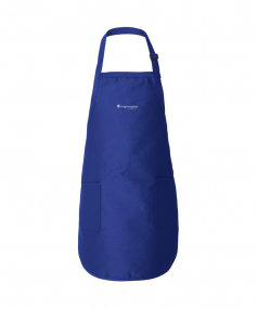 Full-Length Apron made of 7.5 oz., 55 % cotton / 45% polyester. Measures 22" W x 30" H, and has two patch pockets. It also features an adjustable neck strap with a buckle and waist side ties.