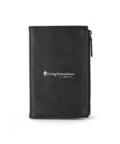 Stylish executive notebook with PU/split leather outer and suede inner cover. Features large zipper pocket (fits up to iPhone 7S Plus). Includes 80-sheet replaceable notebook. 5 3/4" H x 8 1/2" H