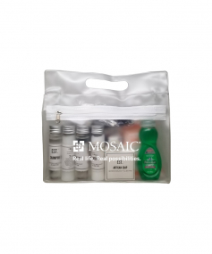 It's always the little things that are forgotten that are hard to find at your new place. We packed all the essentials into one handy tote. EST Shampoo, Conditioner, Body Wash, Lotion & Hand Soap, Old Spice and Dove Deodorants, Toothbrush, Colgate Toothpaste, Whispermint Mouthwash, Brush/Comb, Band Aids, Advil packet, Emergen-C Drink Packs, Alka Seltzer, Baby Wipes, Cotton Balls/Qtips, Tide Laundry Packet and Palmolive Dishwashing Soap. 9 1/2" W x 8" H x 2 3/4" D