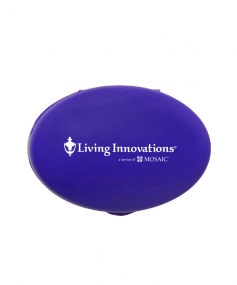 Oval-shaped, lightweight, compact design fits in pockets or purses to carry a variety of pills, large or small. Complies with Prop 65. 1 5/16" W x 1 7/8" H x 7/8" D
