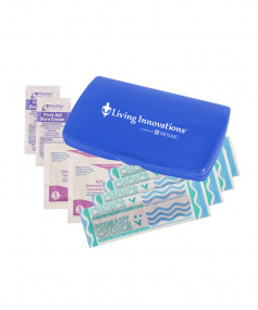Ultra-trim case contains 4-latex-free bandages, 2-antiseptic towelettes and 2-first aid cream packets. Complies with Prop 65. 2 9/16" W x 4 1/8" H x 1/2" D