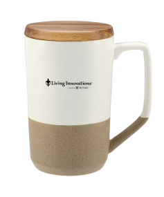 Cozy ceramic mug with a vintage finish on the body. Features an innovative groove design on the top for holding teabags. And perfect to drink tea with this mug. Wood, push-on lid, spill-resistant. 16oz.